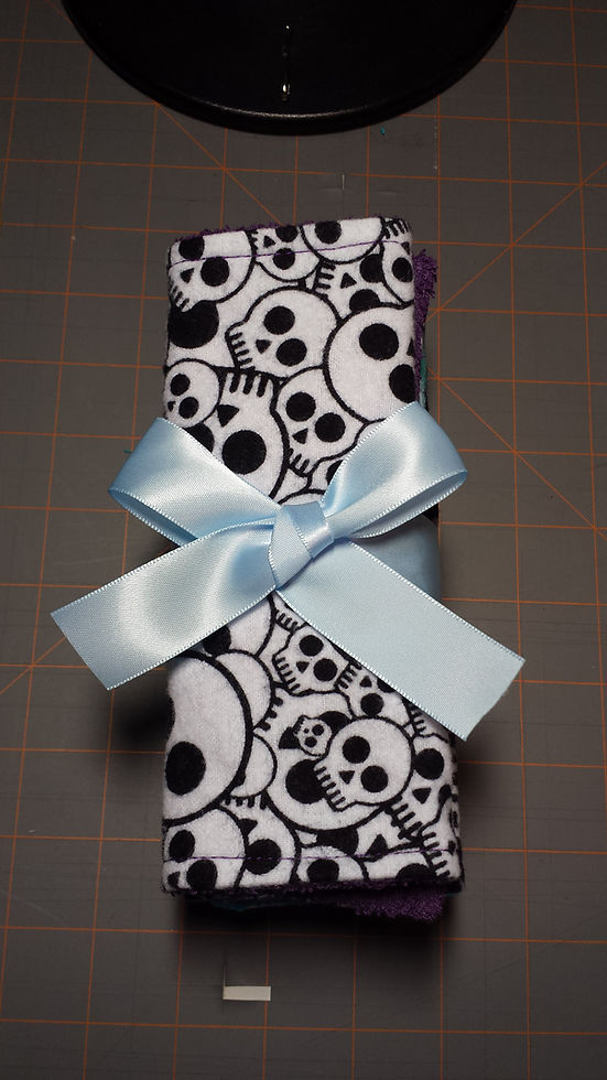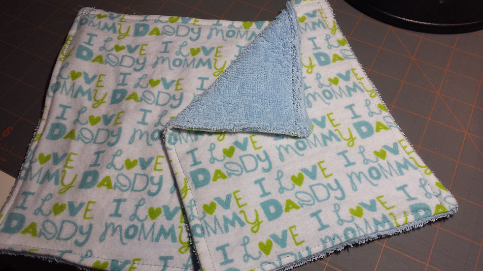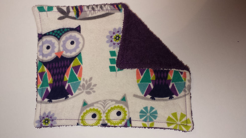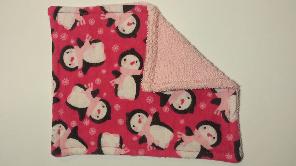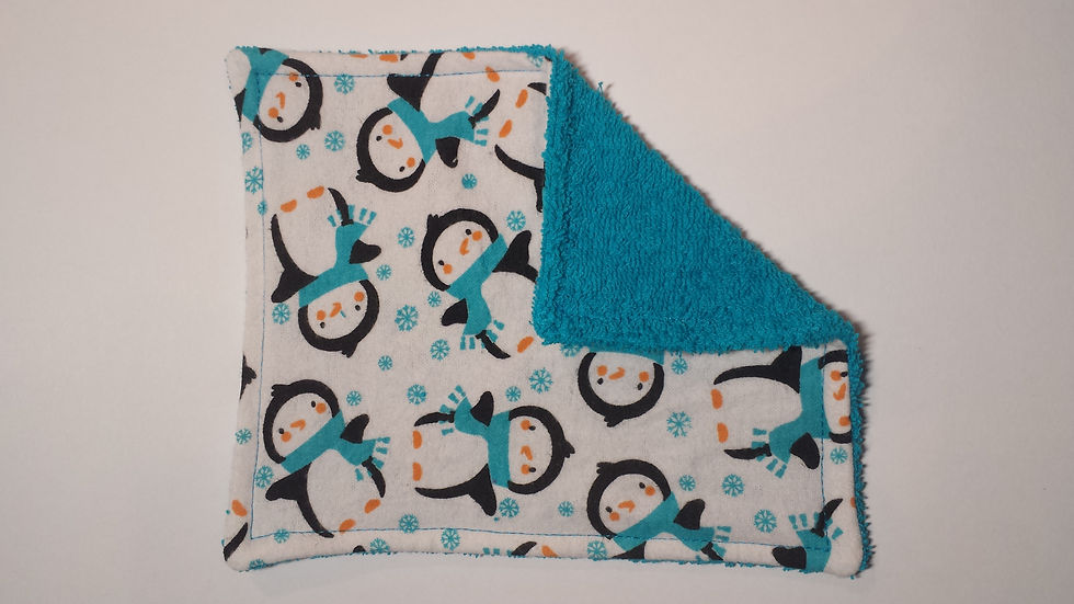 Our wipes are made of 100% cotton snuggle flannel on one side and super absorbent 100% cotton terry cloth or chenille on the back. Each wipe is sewn, turned out and top stitched for durability and to help retain its shape. We just got in a ton of new designs and backing colors! Check them out below! If you'd prefer a different backing color, just send a message as we can accommodate custom orders.